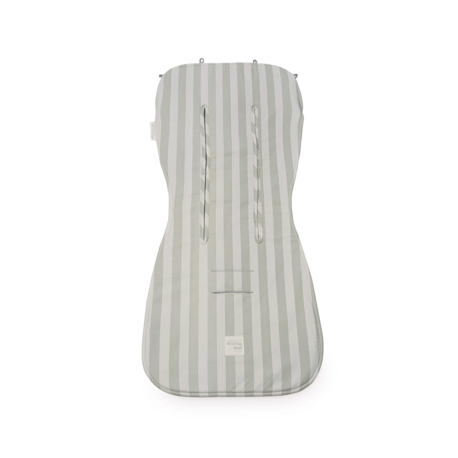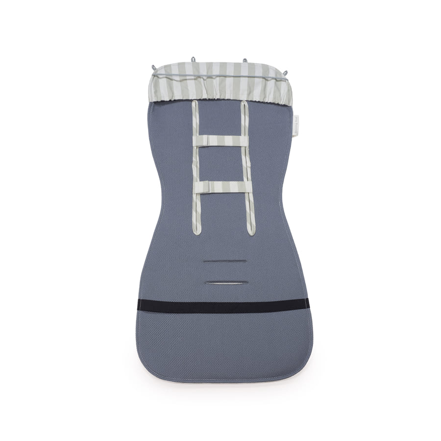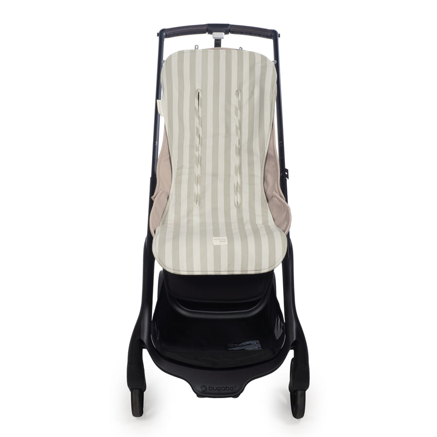 La colchoneta para silla de paseo Sintra verde con estampado de rayas está fabricado con un tejido exterior 100% algodón es el forro ideal para cubrir el asiento de tu bebé durante el verano, protegiendo su piel de las rozaduras e irritaciones del calor y además mantienes el tapizado original como nuevo.