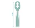 Está diseñada especialmente para los peques que empiezan a llevarse la cuchara a la boca pero aun no dominan el equilibrio necesario. Para ellos es una cuchara más fácil y cómoda, y sobretodo adaptada a sus movimientos y gestos, ya que con ella no se derraman los purés y los trocitos no deben ser pinchados, lo cual requeriría de mayor motricidad fina.