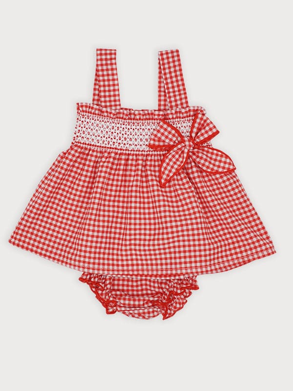 Vestido sin mangas con volante en los hombros estampado topitos.